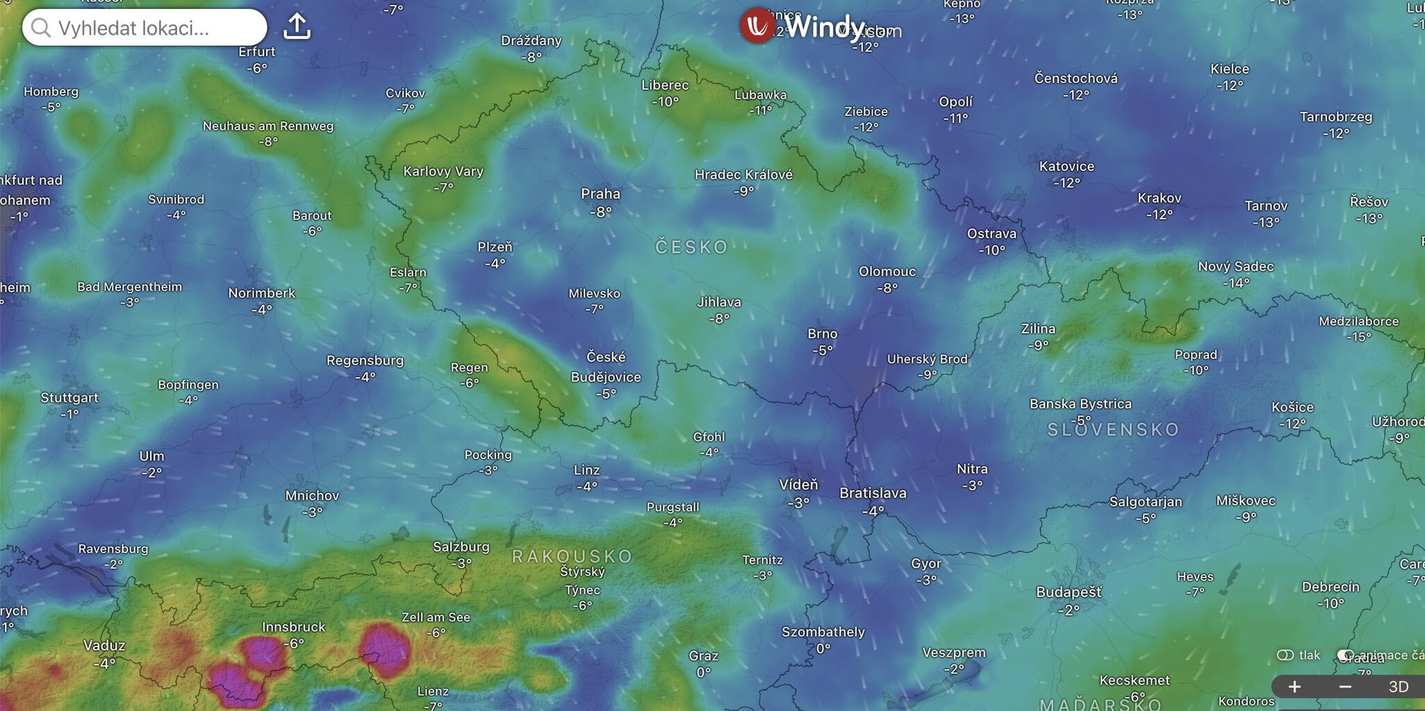 Česká aplikace Windy je ze všech tří nástrojů nejpřístupnější a zároveň výrazně pokročilejší než klasické aplikace. Kombinuje to nejlepší z obou světů. Nabízí interaktivní mapu, na které si můžete zapnout vrstvy jako teplota u země, sněžení nebo mráz – a hlavně přepínat mezi různými meteorologickými modely.