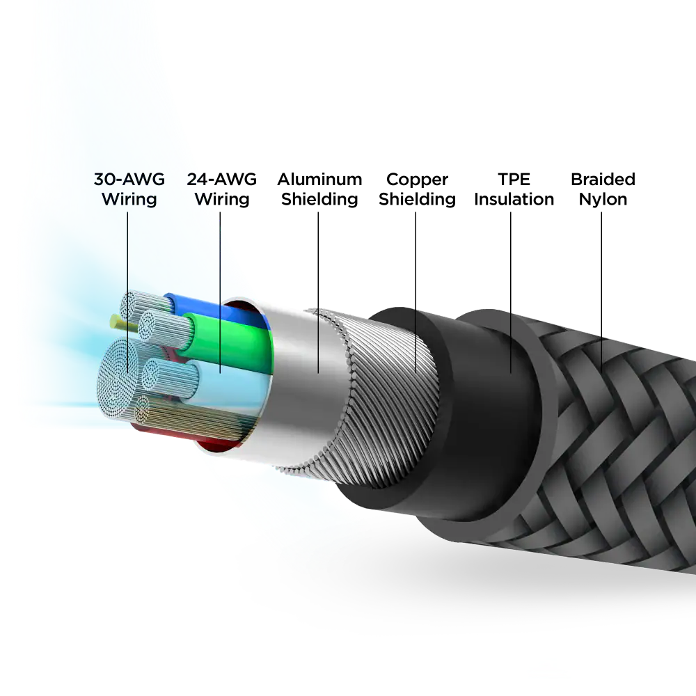 - Kabel za 1000 Kč: Výrobci zde používají kevlarová vlákna, nylonové opletení proti zamotání a samotné konektory jsou vylisované z jednoho kusu kovu, aby snesly desetitisíce zapojení.