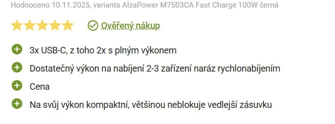 - https://www.alza.cz/alzapower-m7503ca-fast-charge-100w-cerna-d10742367.htm