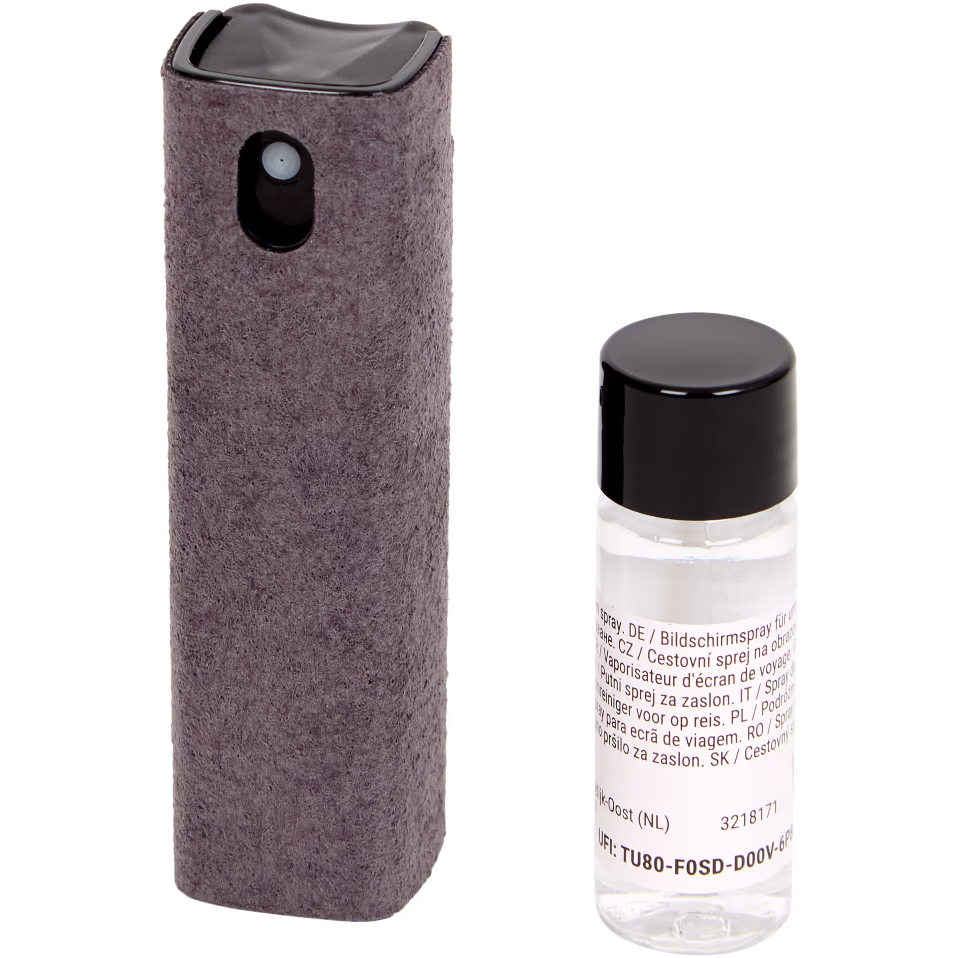 Uvnitř je lahvička s čisticím roztokem o objemu 10 ml a celé pouzdro je potažené jemným mikrovláknem. Stačí tedy nastříknout trochu roztoku na displej a hned ho setřít samotným tělem čističe. Nepotřebujete nic dalšího, žádnou samostatnou utěrku ani kapesník.