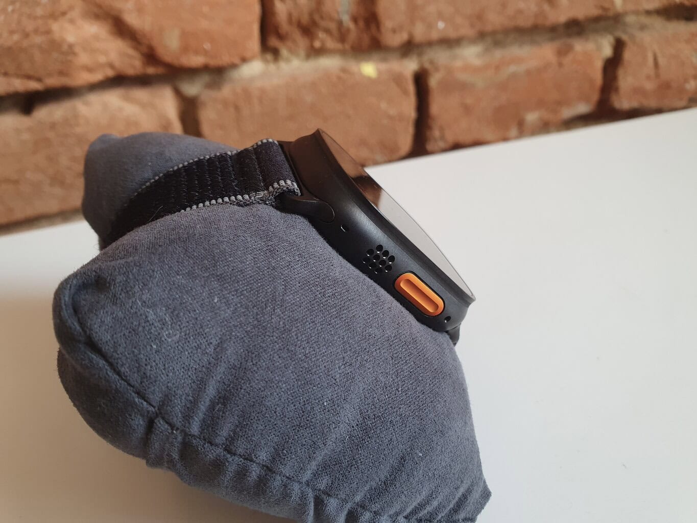 Hodinky mají robustní pouzdro, které nepatří mezi nejlehčí. Právě proto mě pohodlí při nošení velmi příjemně překvapilo. Hodinky mi seděly na zápěstí ještě lépe než Apple Watch Series 11 s milánským tahem. Watch Ultra 3 jsem testoval s nylonovým řemínkem, se kterým jsem byl nad míru spokojen. Jelikož je mírně elastický, krásně kopíruje tvar zápěstí i při pevném utažení bez nepříjemného řezání.