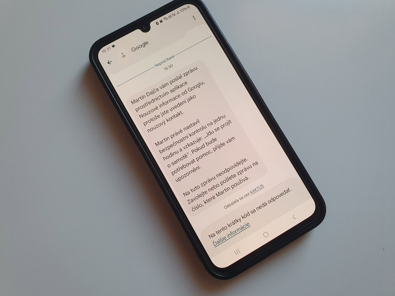 Zpráva nouzovému kontaktu. Foto: Martin Dajča